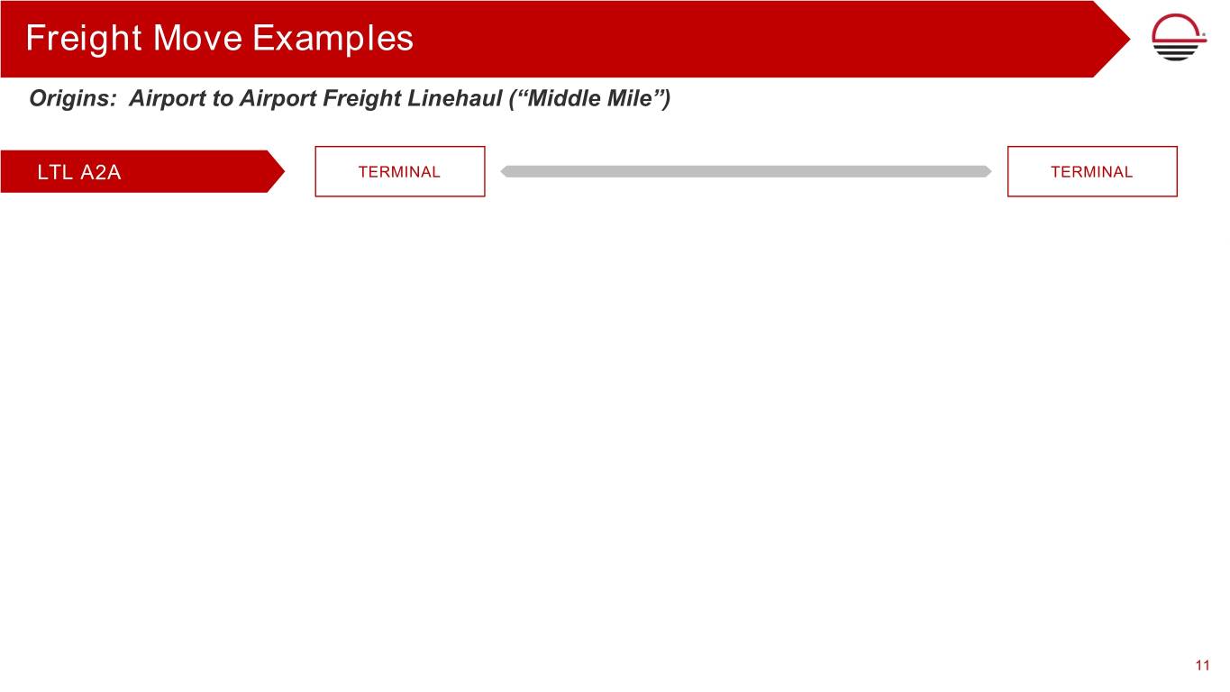 Freight Move Examples Origins: Airport to Airport Freight Linehaul (“Middle Mile”) LTL A2A TERMINAL TERMINAL 11