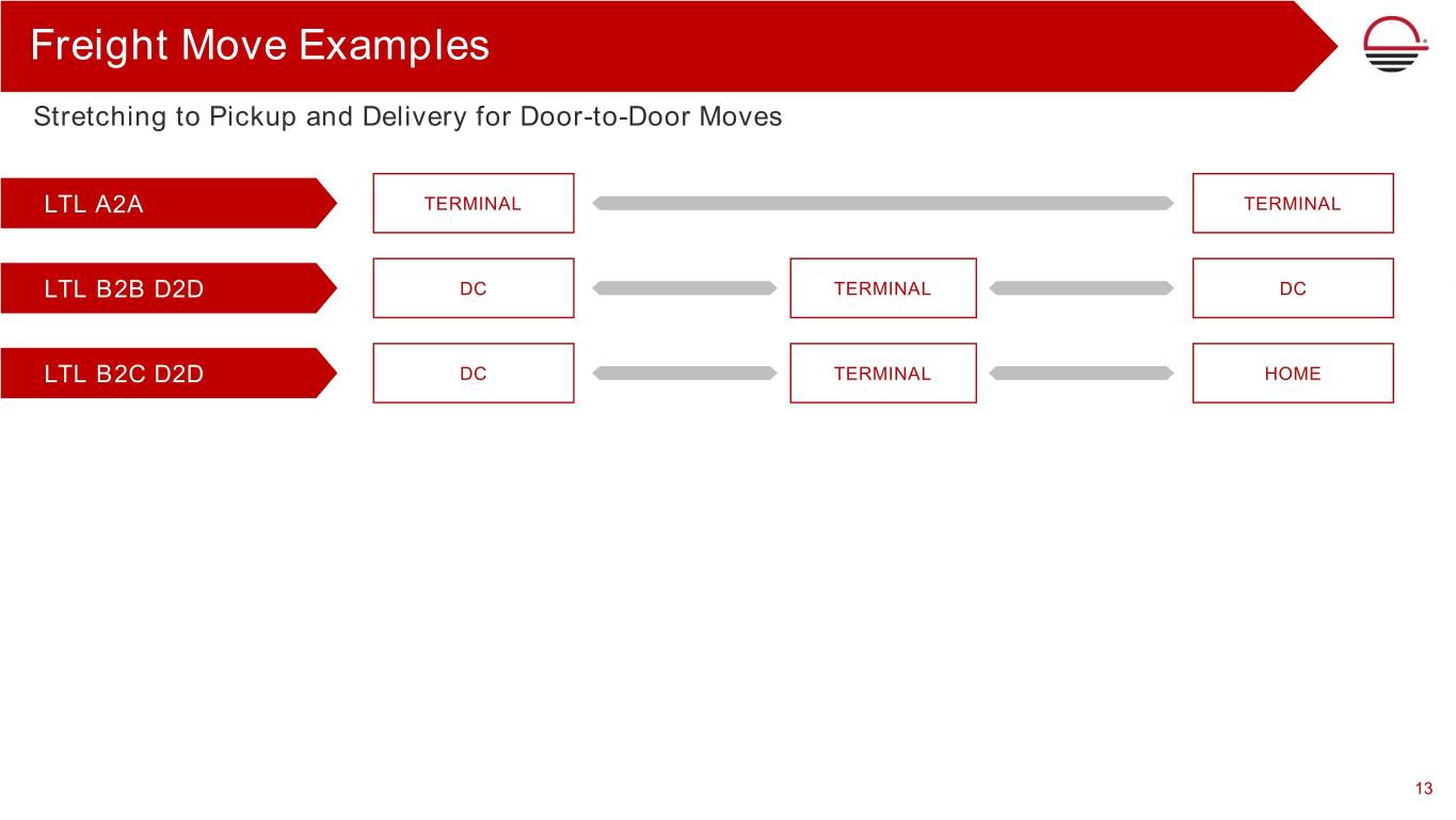Freight Move Examples Stretching to Pickup and Delivery for Door-to-Door Moves LTL A2A TERMINAL TERMINAL LTL B2B D2D DC TERMINAL DC LTL B2C D2D DC TERMINAL HOME 13