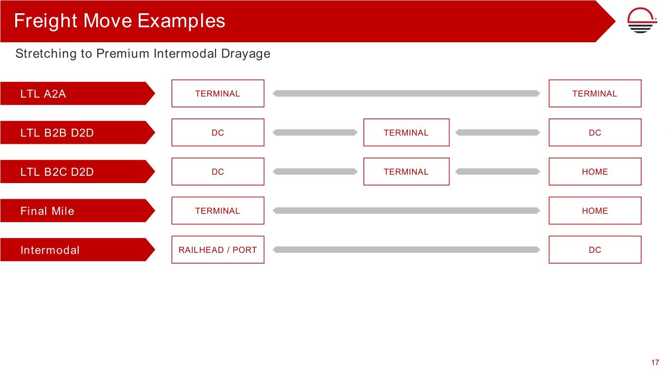 Freight Move Examples Stretching to Premium Intermodal Drayage LTL A2A TERMINAL TERMINAL LTL B2B D2D DC TERMINAL DC LTL B2C D2D DC TERMINAL HOME Final Mile TERMINAL HOME Intermodal RAILHEAD / PORT DC 17