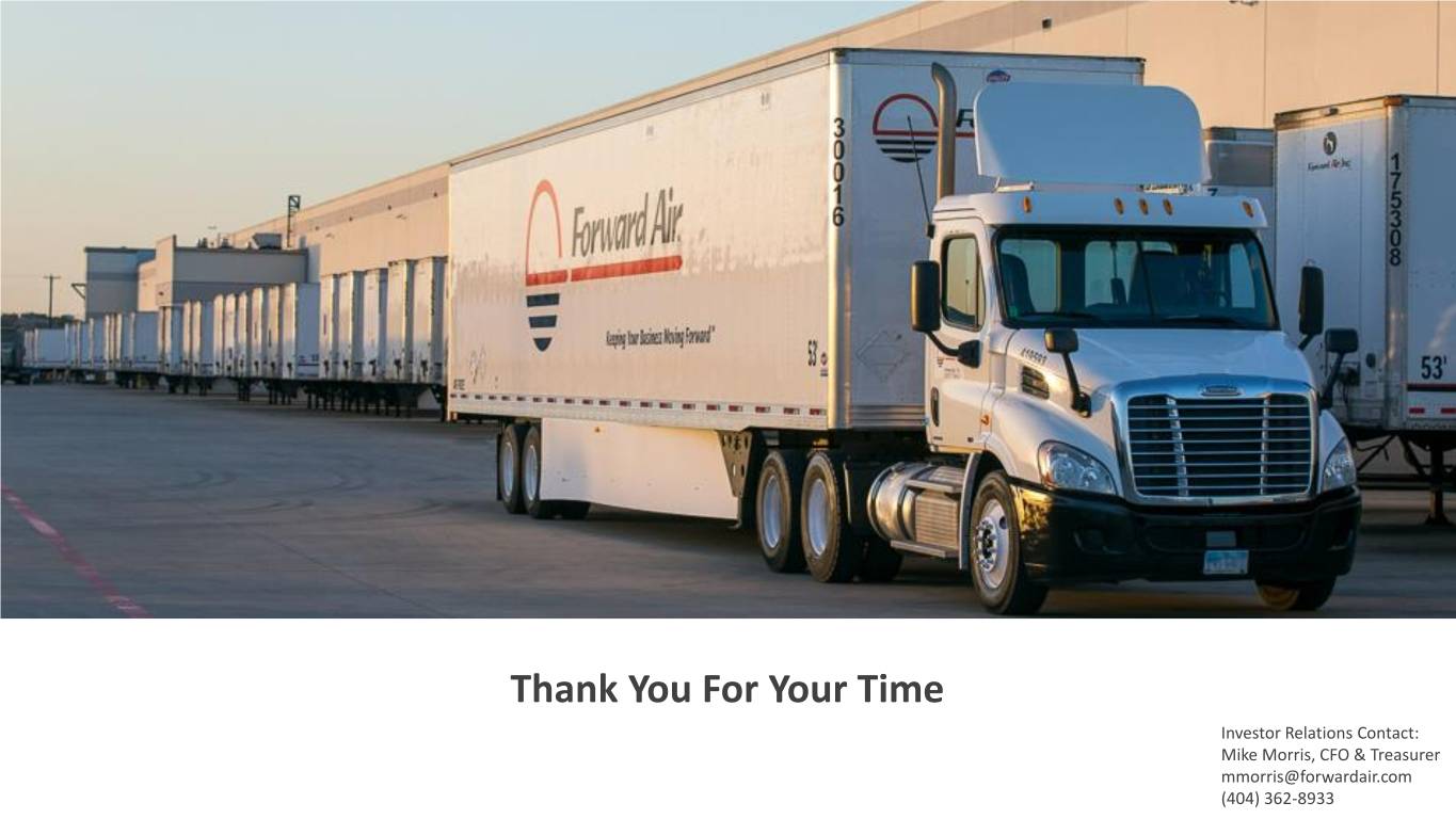 Thank You For Your Time Investor Relations Contact: Mike Morris, CFO & Treasurer mmorris@forwardair.com (404) 362-8933