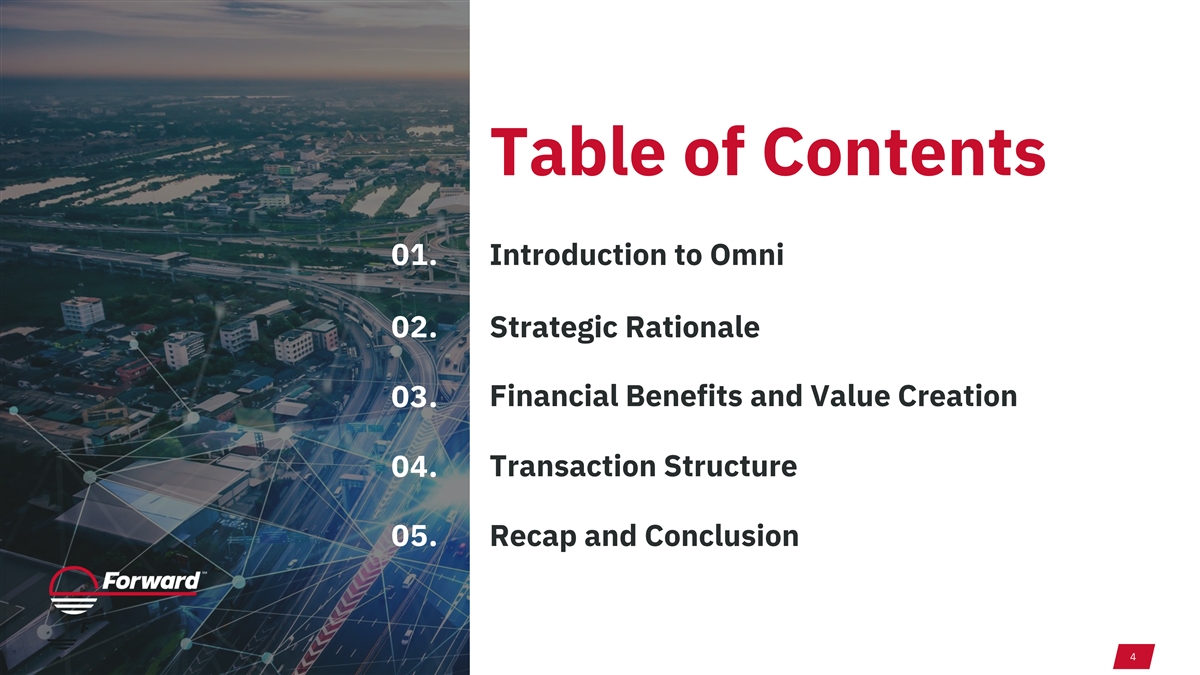 Table of Contents 01. Introduction to Omni 02. Strategic Rationale Financial Benefits and Value Creation 03. Transaction Structure 04. 05. Recap and Conclusion 4 4