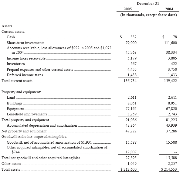 Repurchase of Common Stock On July 25, 2002, the Company announced that its Board of Directors approved a stock repurchase program for up to 3.0 million shares of common stock (the 2002 Repurchase Plan). During the third quarter of 2005, the Company completed the repurchase of the shares authorized under the 2002 Repurchase Plan. On November 17, 2005, the Company announced that its Board of Directors approved a stock repurchase program for up to 3.0 million shares of common stock (the 2005 Repurchase Plan). For the year ended December 31, 2005, the Company repurchased approximately 1.7 million shares of common stock under both the 2002 Repurchase Plan and the 2005 Repurchase Plan for $52.3 million, or $30.92 per share.