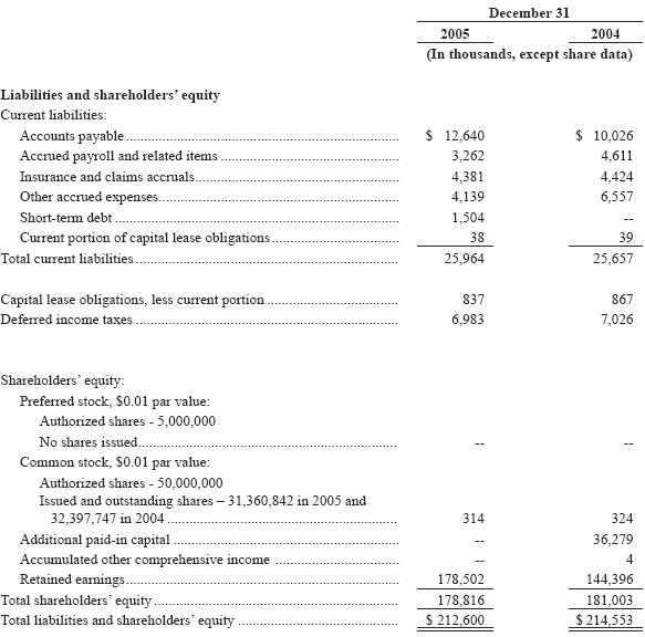 As permitted by SFAS No. 123, the Company, through December 31, 2005, accounted for share-based payments to employees using APB Opinion No. 25s intrinsic value and, as such, generally recognized no compensation cost for employee stock options. However, effective December 31, 2005, the Companys Board of Directors accelerated the vesting of all the Companys outstanding and unvested stock options awarded to employees, officers and non-employee directors under the Companys stock option award program. As a result of the vesting acceleration, the Company recorded $1.3 million of stock-based compensation expense in accordance with ABP Opinion No. 25, included in salaries, wages and employee benefits. The primary purpose of the accelerated vesting of these options was to eliminate future compensation expense that the Company would otherwise have recognized in its statement of operations with respect to these options upon the adoption of SFAS No. 123R. The Company adopted SFAS No. 123R effective January 1, 2006 and elected the modified-prospective transition method. Under the modified-prospective transition method, awards that are granted, modified, repurchased or canceled after the date of adoption should be measured and accounted for in accordance with SFAS No. 123R. Stock-based awards that are granted prior to the effective date should continue to be accounted for in accordance with SFAS No. 123, except that stock option expense for unvested options must be recognized in the statement of operations. As a result of the Companys acceleration of the vesting of its outstanding and unvested options effective December 31, 2005, there is no future compensation of options granted prior to January 1, 2006. The amount of compensation cost that would have been recognized in each period after the adoption of SFAS No. 123R that will not be recognized as a result of the vesting modification is as follows: