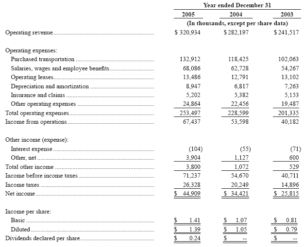 The Company purchased approximately $0.2 million and $0.9 million of truckload transportation services from Landair in 2004 and 2003, respectively, which are included in purchased transportation in the accompanying consolidated statements of income. No truckload transportation services were purchased during 2005.