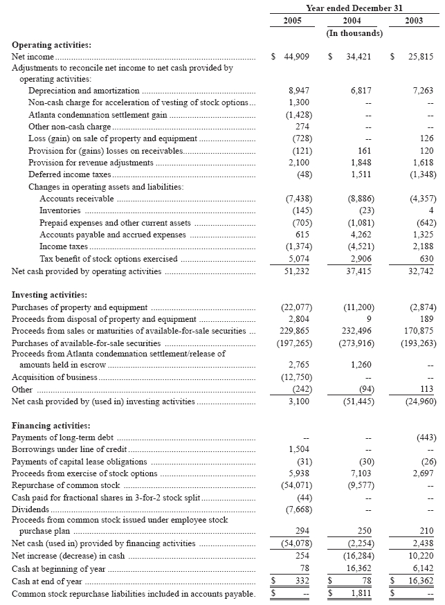 The tax benefits associated with the exercise of stock options during the years ended December 31, 2005, 2004 and 2003 were $5.1 million, $2.9 million and $0.6 million, respectively, and are reflected as an increase in additional paid-in capital in the accompanying consolidated statements of shareholders equity.