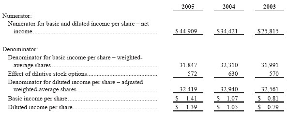 Income Per Share The following table sets forth the computation of basic and diluted income per share (in thousands, except per share data):