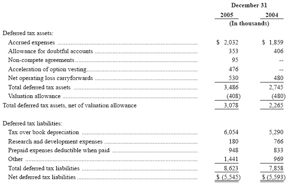 At December 31, 2005 and 2004, the Company had state net operating loss carryforwards of $12.1 million and $8.0 million, respectively, that will expire between 2013 and 2024. The use of these state net operating losses is limited to the future taxable income of separate legal entities. As a result, the valuation allowance has been provided for certain state loss carryforwards. The change in the valuation allowance was a decrease of $0.1 million during 2005. Based on expectations of future taxable income, management believes that it is more likely than not that the results of operations will generate sufficient taxable income to realize the deferred tax assets after giving consideration to the valuation allowance.