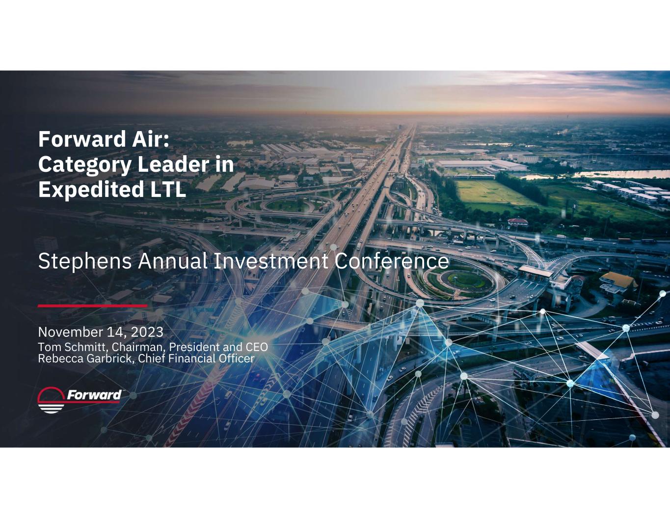 Forward Air: Category Leader in Expedited LTL Stephens Annual Investment Conference November 14, 2023 Tom Schmitt, Chairman, President and CEO Rebecca Garbrick, Chief Financial Officer