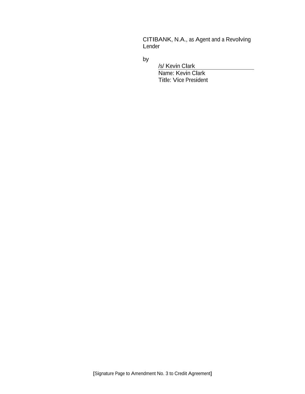 [Signature Page to Amendment No. 3 to Credit Agreement] CITIBANK, N.A., as Agent and a Revolving Lender by /s/ Kevin Clark Name: Kevin Clark Title: Vice President