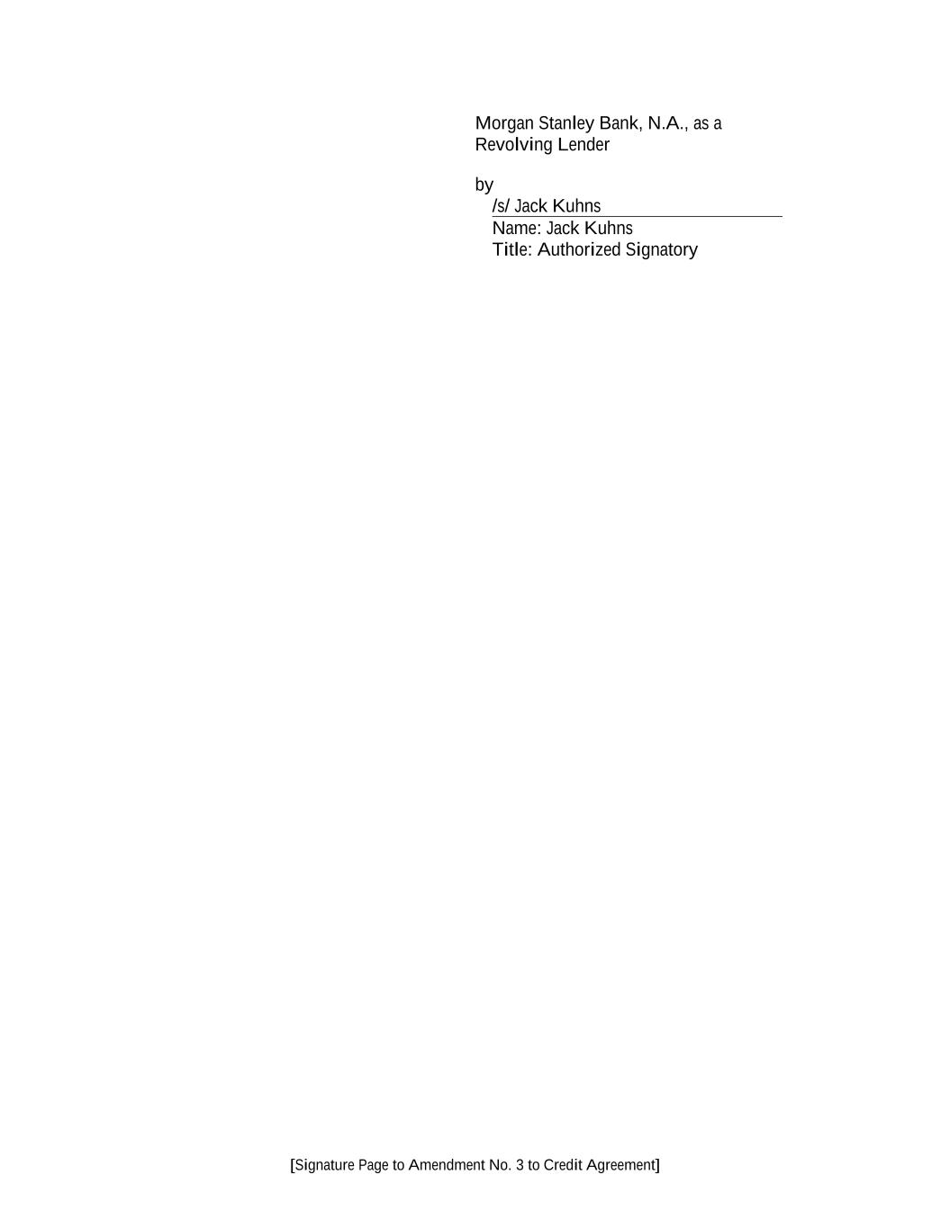 [Signature Page to Amendment No. 3 to Credit Agreement] Morgan Stanley Bank, N.A., as a Revolving Lender by /s/ Jack Kuhns Name: Jack Kuhns Title: Authorized Signatory