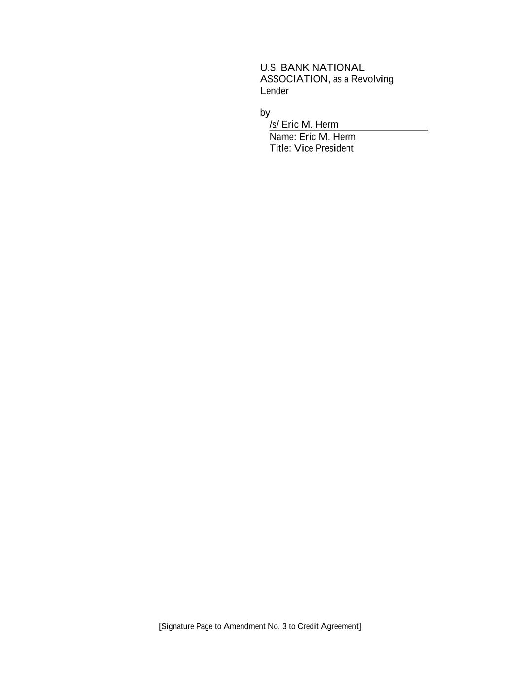 [Signature Page to Amendment No. 3 to Credit Agreement] U.S. BANK NATIONAL ASSOCIATION, as a Revolving Lender by /s/ Eric M. Herm Name: Eric M. Herm Title: Vice President