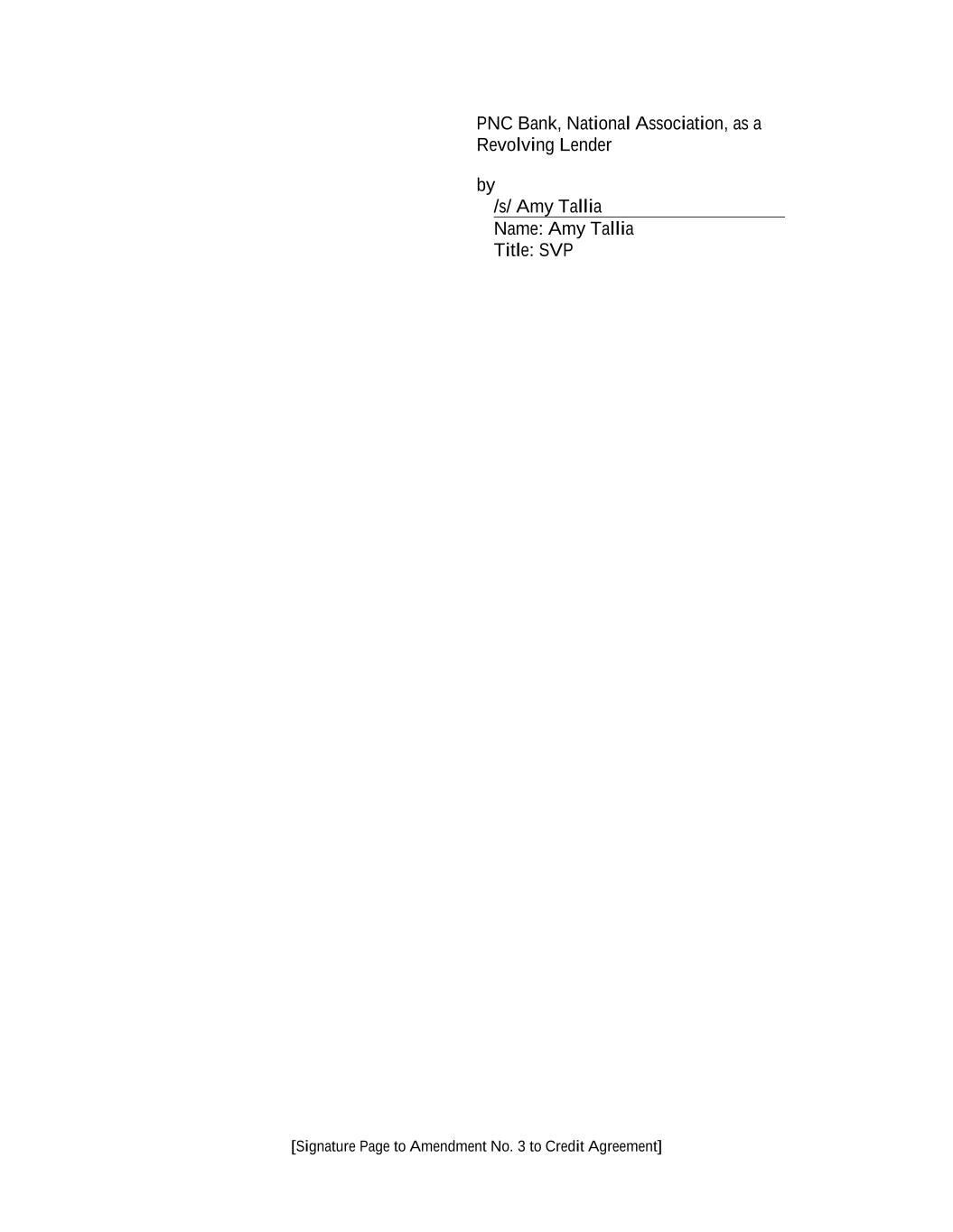[Signature Page to Amendment No. 3 to Credit Agreement] PNC Bank, National Association, as a Revolving Lender by /s/ Amy Tallia Name: Amy Tallia Title: SVP