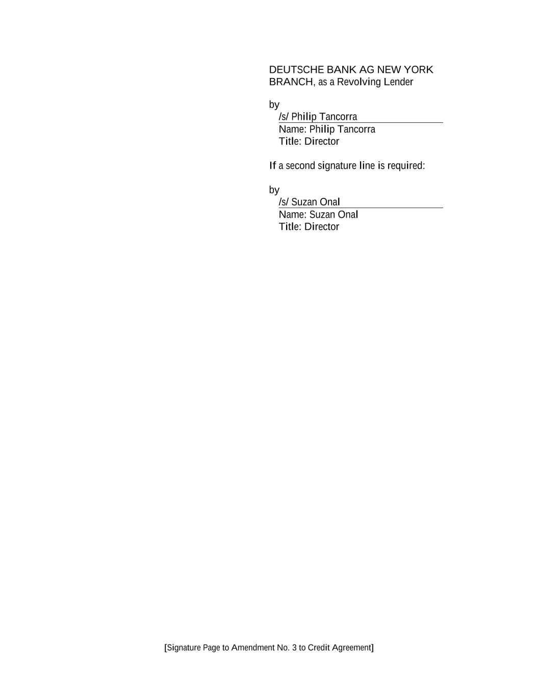 [Signature Page to Amendment No. 3 to Credit Agreement] DEUTSCHE BANK AG NEW YORK BRANCH, as a Revolving Lender by /s/ Philip Tancorra Name: Philip Tancorra Title: Director If a second signature line is required: by /s/ Suzan Onal Name: Suzan Onal Title: Director