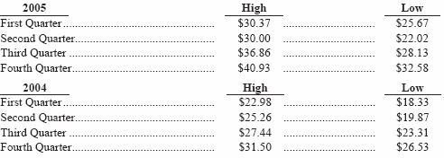 Cash Dividend Prior to February 15, 2005, the Company had never declared a cash dividend. During each quarter of 2005, the Companys Board of Directors declared a cash dividend of $0.06 per share of common stock. On February 13, 2006, the Companys Board of Directors declared a $0.07 per share dividend that will be paid in the first quarter of 2006. The Company expects to continue to pay regular quarterly cash dividends, though each subsequent quarterly dividend is subject to review and approval by the Board of Directors.