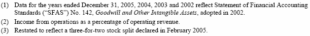 Common Stock Split On February 15, 2005, the Board of Directors declared a three-for-two stock split of the common stock to be effected in the form of a stock dividend to shareholders of record as of March 18, 2005. Common stock issued and additional paid-in capital have been restated to reflect the split for all years presented. All common share and per share data included in the consolidated financial statements and notes thereto have been restated to give effect to the stock split.