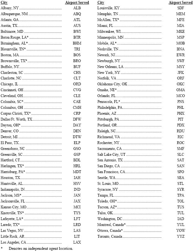 We market our services primarily to air freight forwarders, integrated air cargo carriers, and passenger and cargo airlines. To serve this market, we offer customers a very high level of service with a focus on on-time, damage-free deliveries. We serve our customers by locating terminals on or near airports and maintaining regularly scheduled transportation service between major cities. We receive shipments at our terminals and transport them by truck either (i) directly to the destination terminal; (ii) to our Columbus, Ohio central sorting facility; or (iii) to one of our eight regional hubs, where they are unloaded, sorted and reloaded. After reloading the shipments, we deliver them to the terminals nearest their destinations. We ship freight directly between terminals when justified by the volume of shipments. During