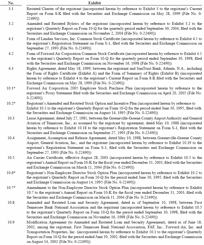 We market our services through a sales and marketing staff located in major air cargo transportation markets of the United States. Senior management also is actively involved in sales and marketing at the national account level and supports local sales initiatives. We have a strong commitment to strategically supporting the wholesale air cargo industry and focus on air freight forwarders, integrated air cargo carriers and passenger and cargo airlines that have time-sensitive shipping needs requiring customized services. We also participate in air cargo trade shows and advertise our services through direct mail programs and through the Internet via www.forwardair.com. The information contained on our website is not part of this filing.