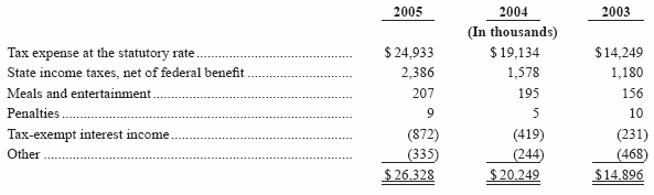 In addition to the provision for income taxes included in the accompanying consolidated statements of income, a deferred tax provision (benefit) of approximately ($2,000), $2,000 and $6,000 is included in other comprehensive income for the years ended December 31, 2005, 2004 and 2003, respectively.